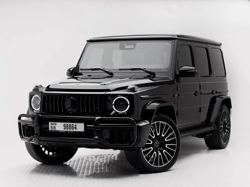 The G63 stands out immediately with its signature shape, aggressive front grille, and commanding body design. In Dubai, where luxury cars are part of the lifestyle, this SUV fits perfectly. Whether you are driving through Downtown Dubai, Dubai Marina, Palm Jumeirah, or Sheikh Zayed Road, the G63 adds confidence and luxury to every trip.